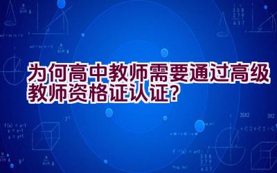 为何高中教师需要通过高级教师资格证认证?